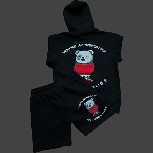 YATHEPANDA Hoodie Shorts Set (Black/Red)